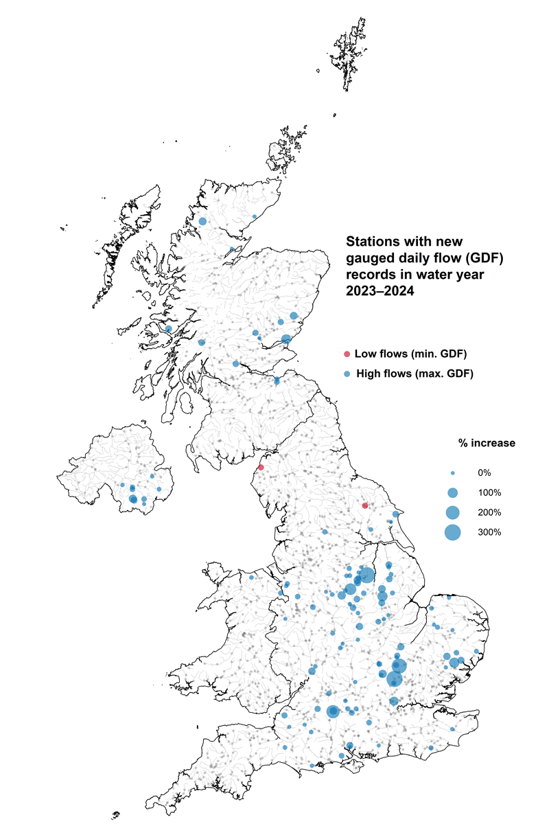 Daily flow data for the 2023/2024 water year are now available to download from the National River Flow Archive (NRFA) for most gauging stations across the UK. All active stations have now been updated with quality-controlled daily mean flow data up to 30 September 2024.