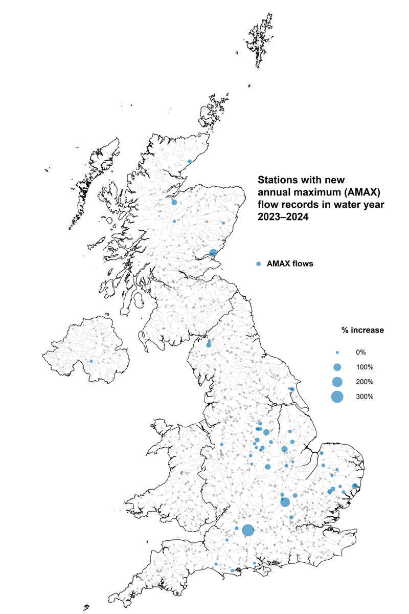 • An additional water year of data (updated to 30th September 2024) for all active peak flow stations in the UK